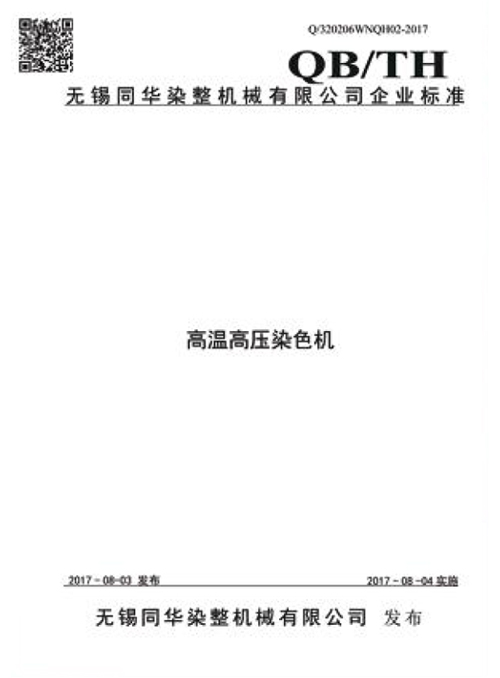 无锡同华染整机械有限公司创始于2001年,坐落于江苏省无锡市惠山区前洲工业园区北拓区,是一家专业从事I、II类(D1、D2)压力容器制造,以染整装备研发、制造为主的生产企业。主要产品有间歇式高温高压染色机、常温常压染色机等。